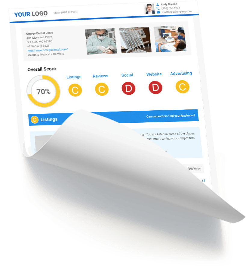 By analyzing the many pillars of the digital marketing stack - Listings, Reviews, Social, Website, and Advertising - the Snapshot report will help you to understand where your business ranks, which areas need the most help, and how we can provide the right solutions.
