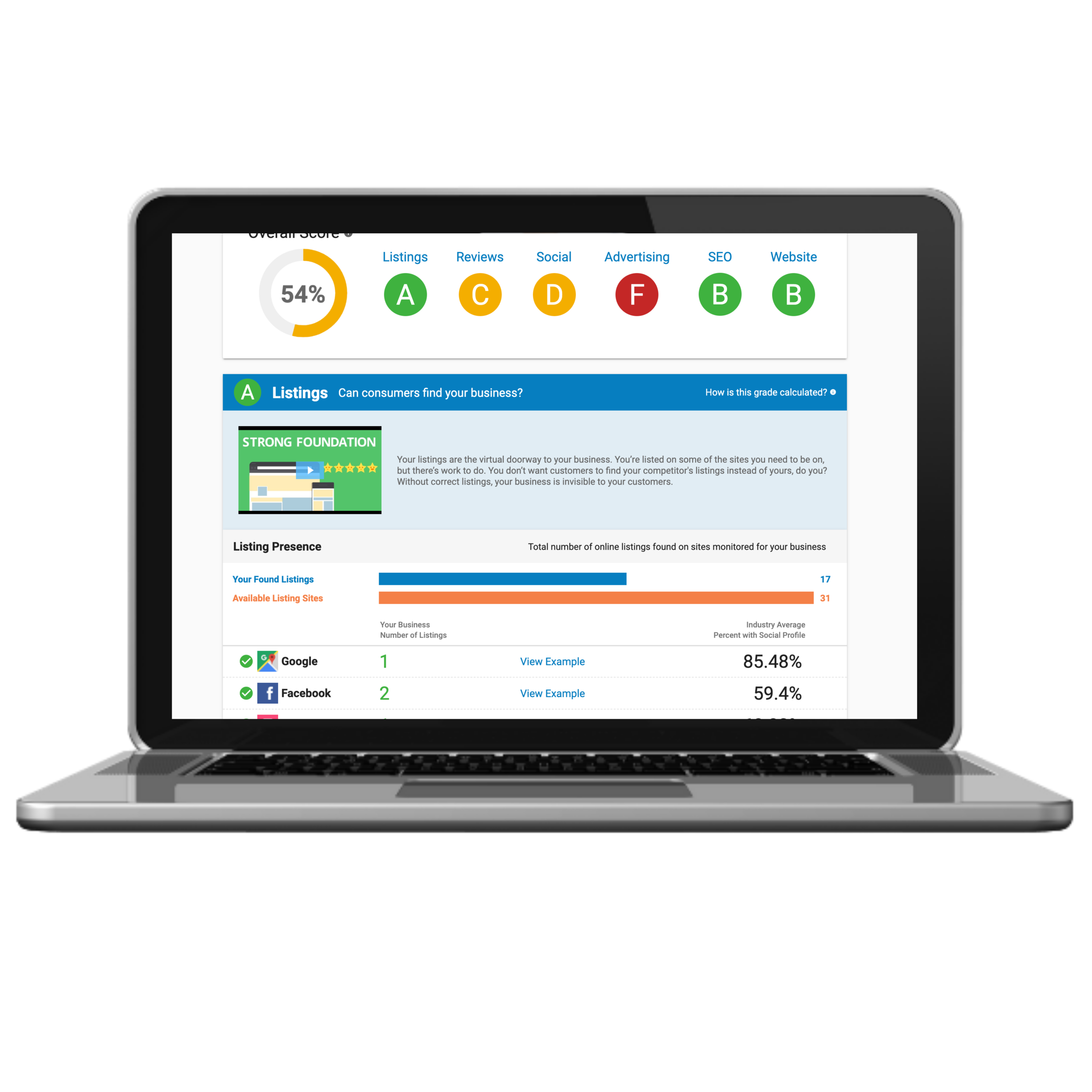 Imagine if you had a personalized report that shows you and compares your business' online presence to others in your industry?